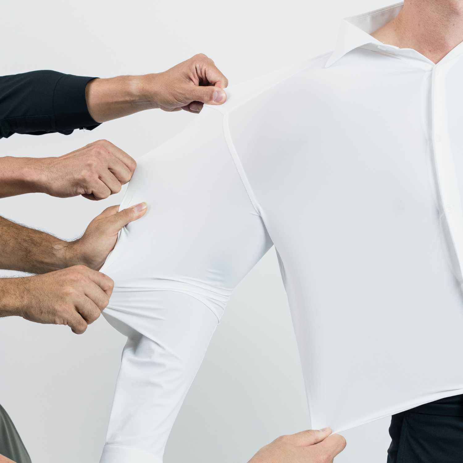 The magic doesn't stop at liquid resistance. Our unique cross-weave pattern creates a molecular memory that actively stretches and fights wrinkles at a structural level, while thermal-regulating compounds in the fabric keep you at the perfect temperature. From coffee splashes at 9AM to wine toasts at 9PM, CoolGuard™ maintains its crisp, camera-ready finish through it all.